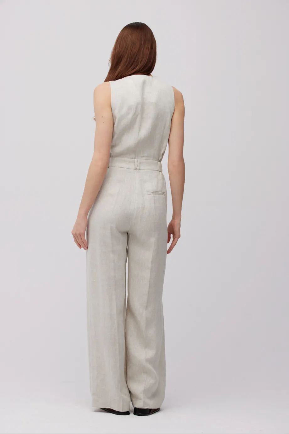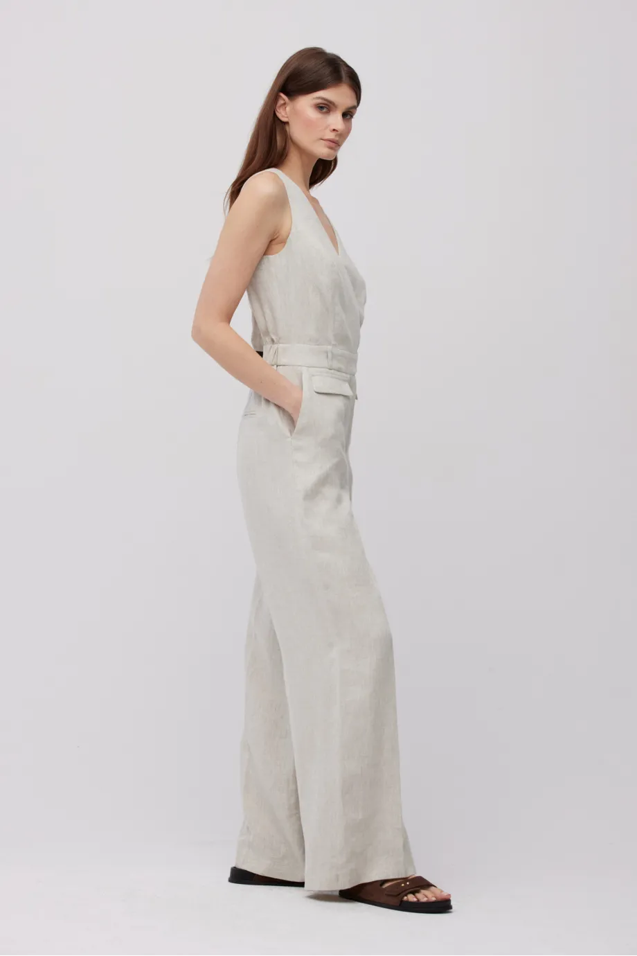 Beiger Leinen-Jumpsuit mit weiten Beinen