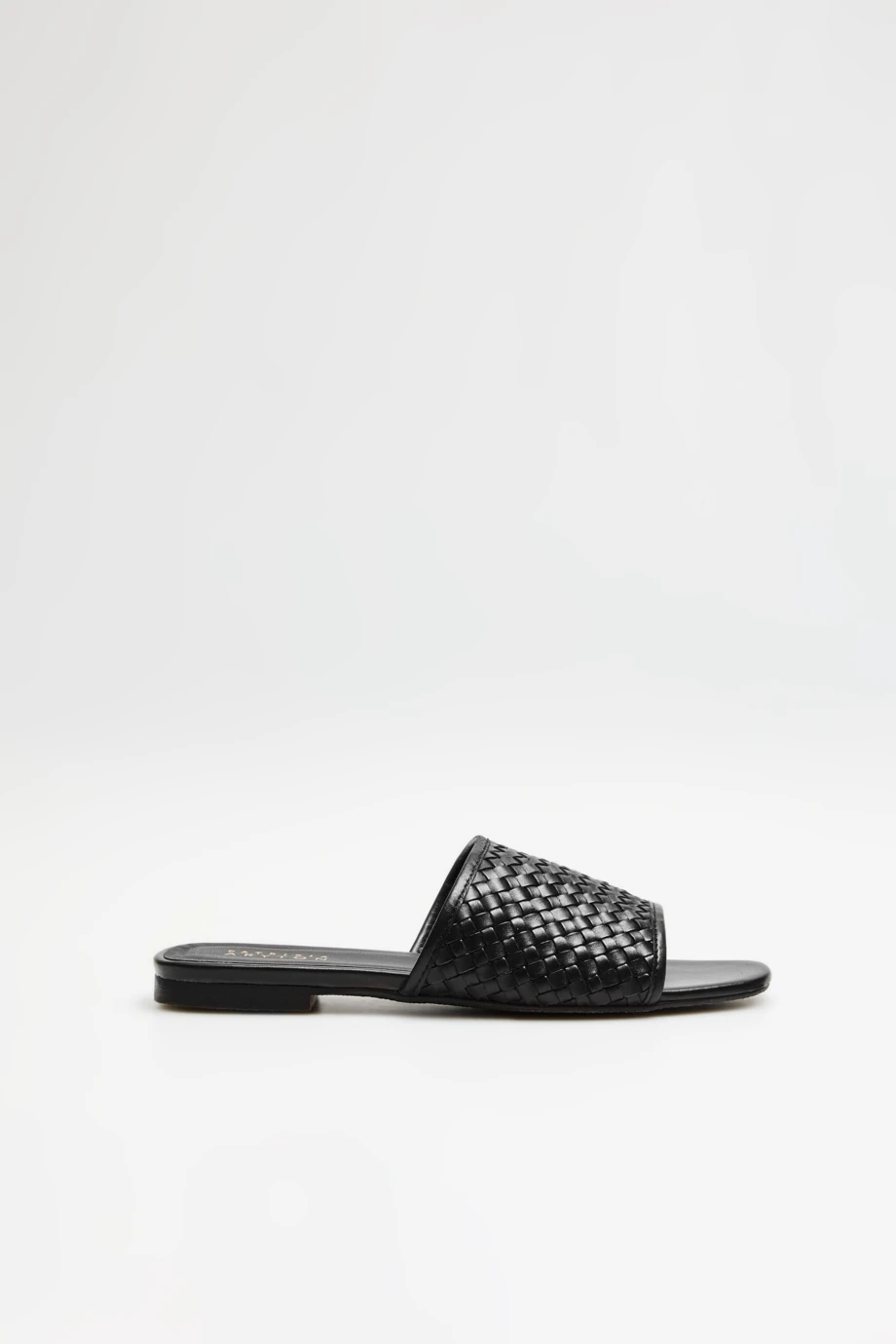 Schwarze Lederpantoletten aus geflochtenem Leder