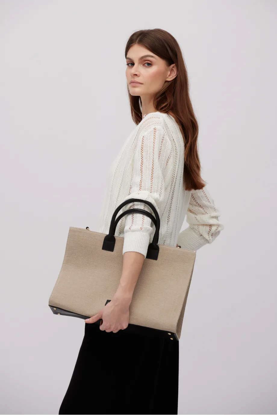 - Kurze Ledergriffe und langer, verstellbarer Schultergurt (abnehmbar)