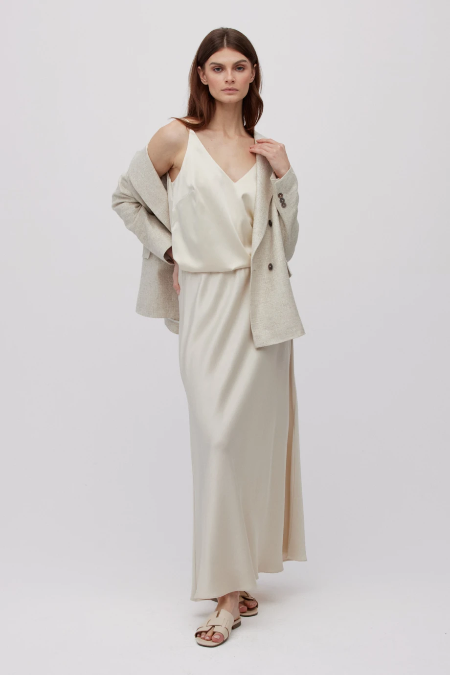 Langer beiger Rock mit Schlitzen