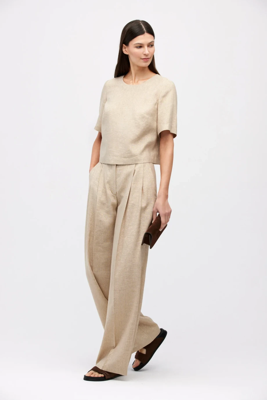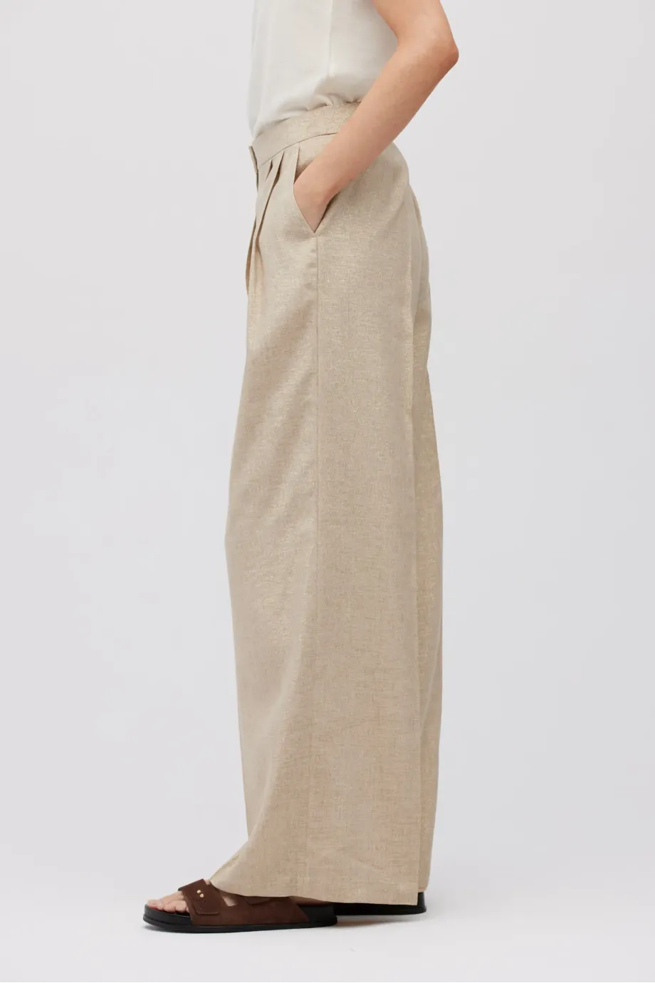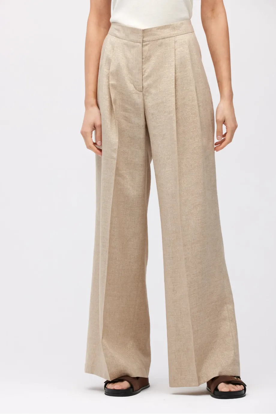 - Weite Leinenhose mit goldenem Faden, mit Biesen