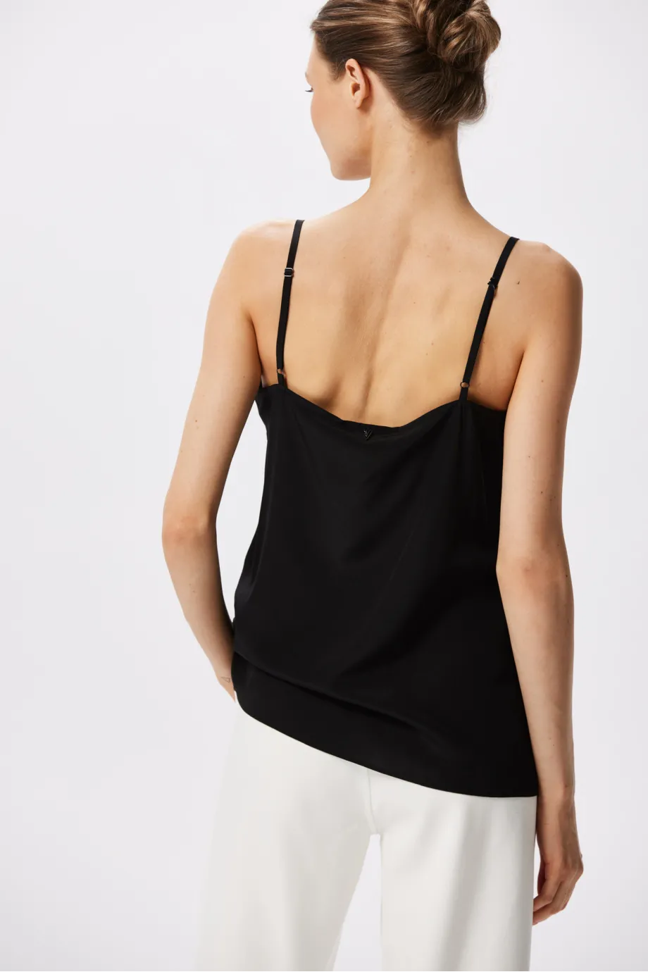 Schwarzes Seidentop mit Spaghetti-Trägern Mari