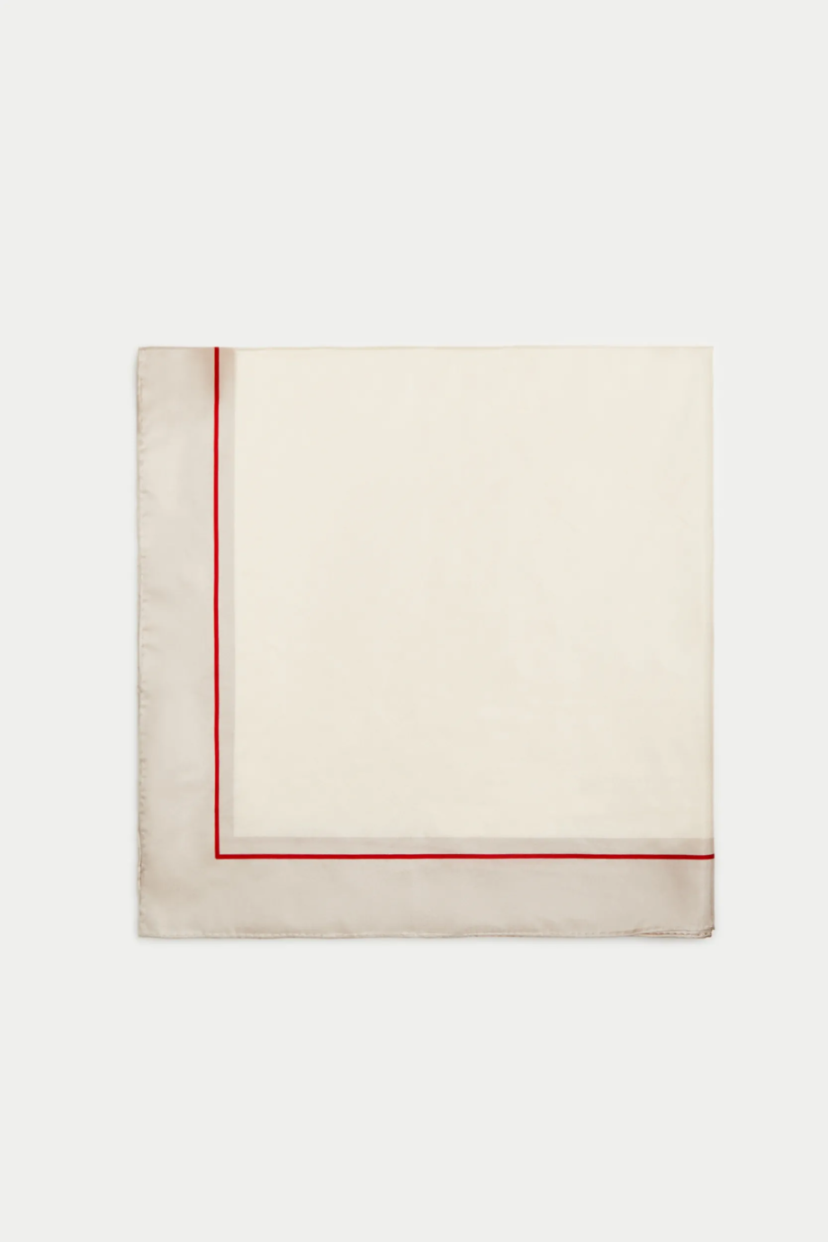 Seidenschal in einer minimalistischen Farbpalette – Beigetöne mit einem kontrastreichen roten Akzent.