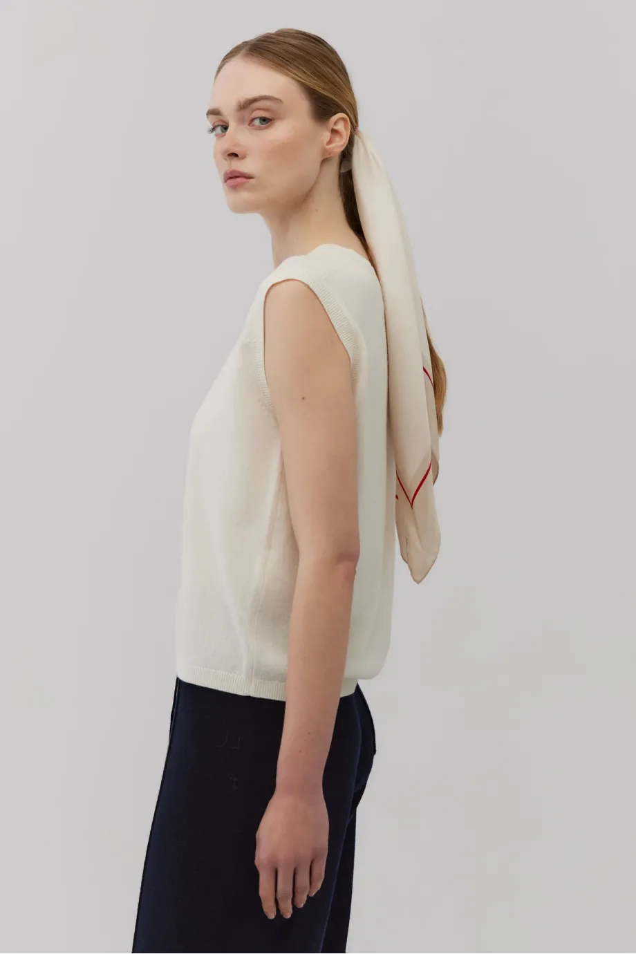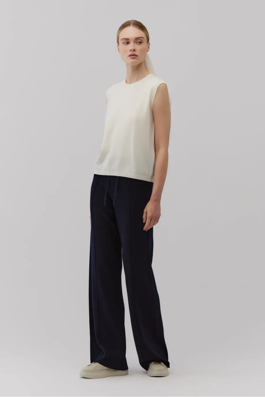 Weiches Top ohne Ärmel mit Rundhalsausschnitt. Gerade, leicht taillierte Passform. Hergestellt aus Strick mit Kaschmiranteil. Single Jersey-Geflecht. Farbe: Weiß.
