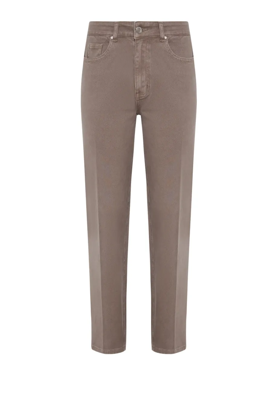 Mum-Fit-Jeans – leicht nach unten verjüngt. Klassischer Fünf-Taschen-Stil. Hohe Taille. Verschluss mit Reißverschluss und Metallknopf. Hergestellt aus Baumwolle mit Elasthan-Anteil – weich und komfortabel zu tragen. Farbe braun.