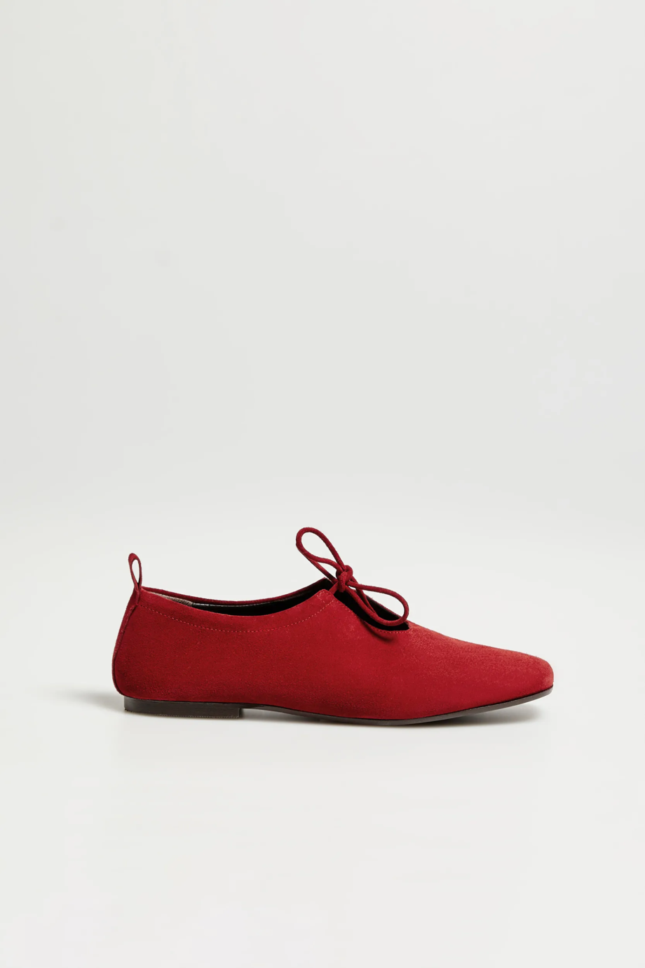 Weiches natürliches Wildleder. Schnürmodell auf flacher Sohle. Farbe rot. Auch in Beige erhältlich. Handgefertigt in einer spanischen Manufaktur.