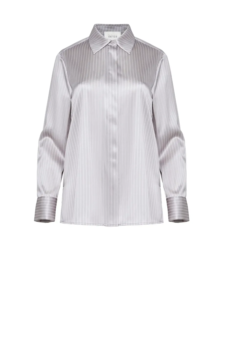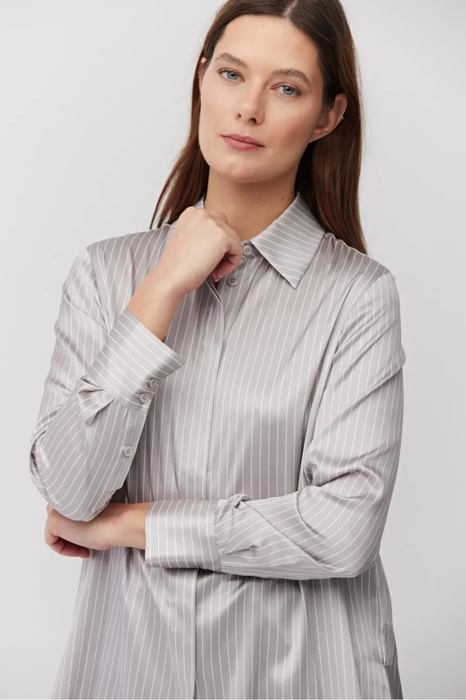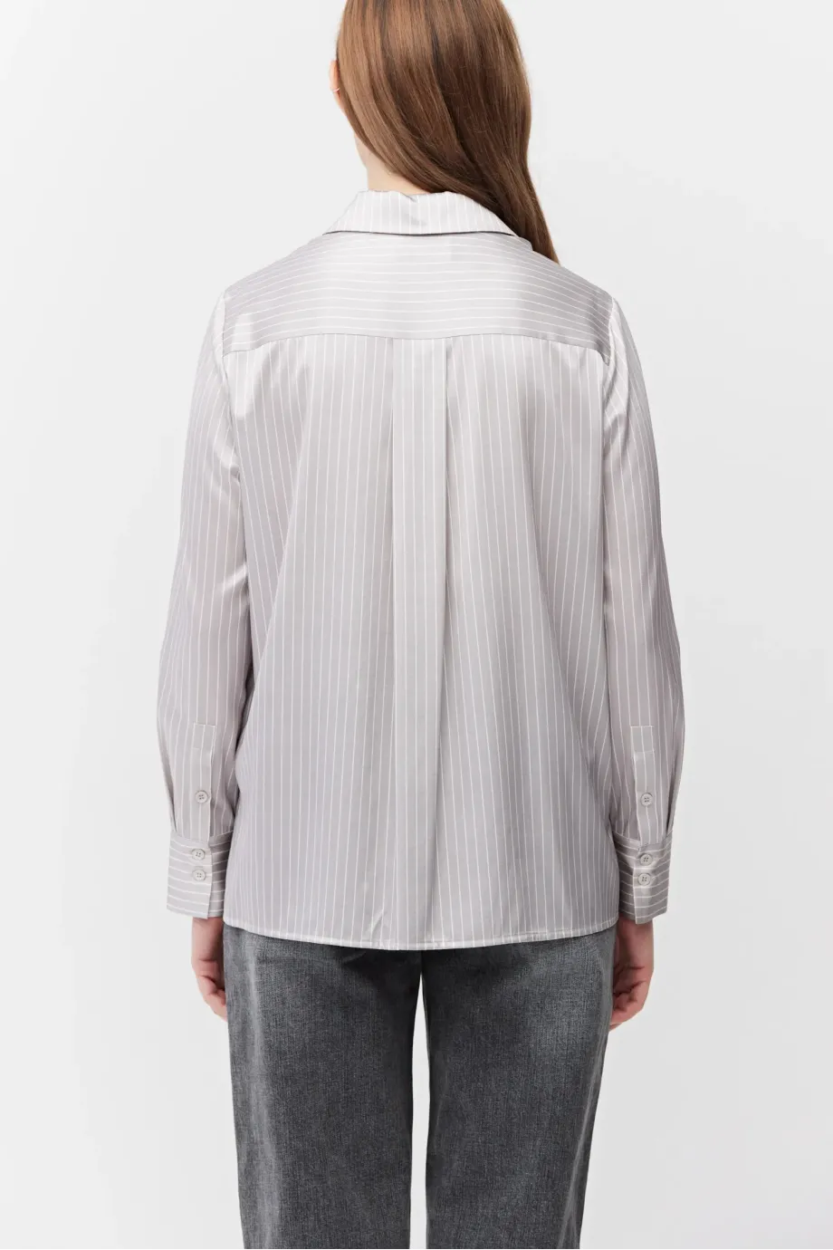 Seidenhemd mit Streifen. Knopfleiste mit Perlmuttknöpfen in verdeckter Leiste. Kragen, lange Ärmel. Lockerer Schnitt.