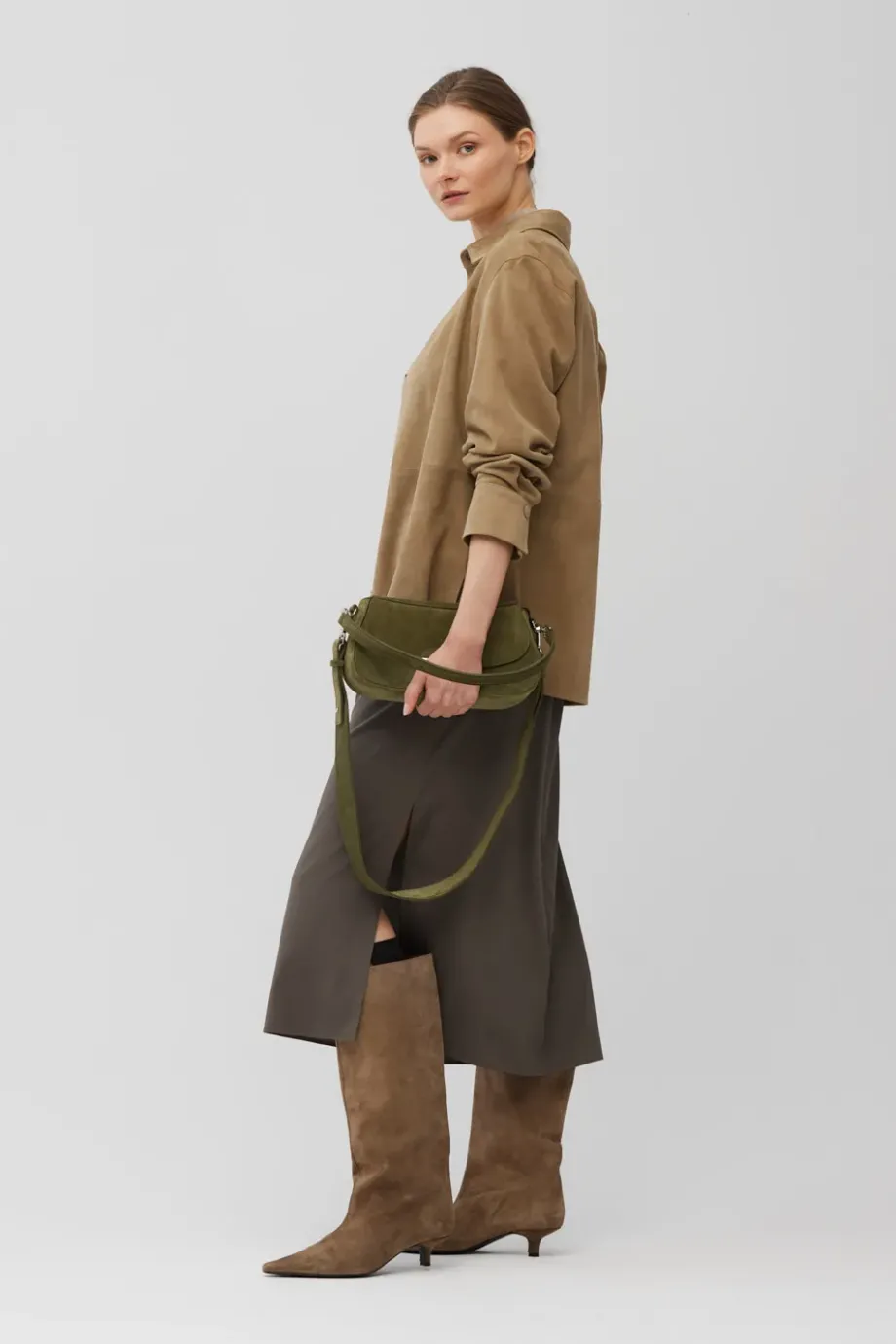 Kleine grüne Tasche aus natürlichem Wildleder
