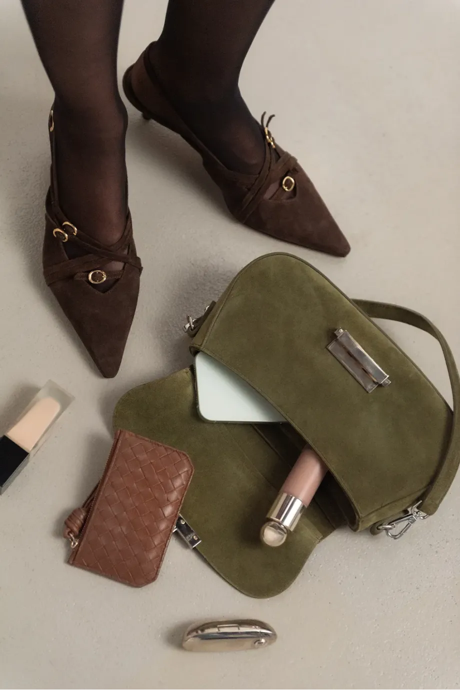 Schokoladenbraune Slingback-Schuhe aus Wildleder