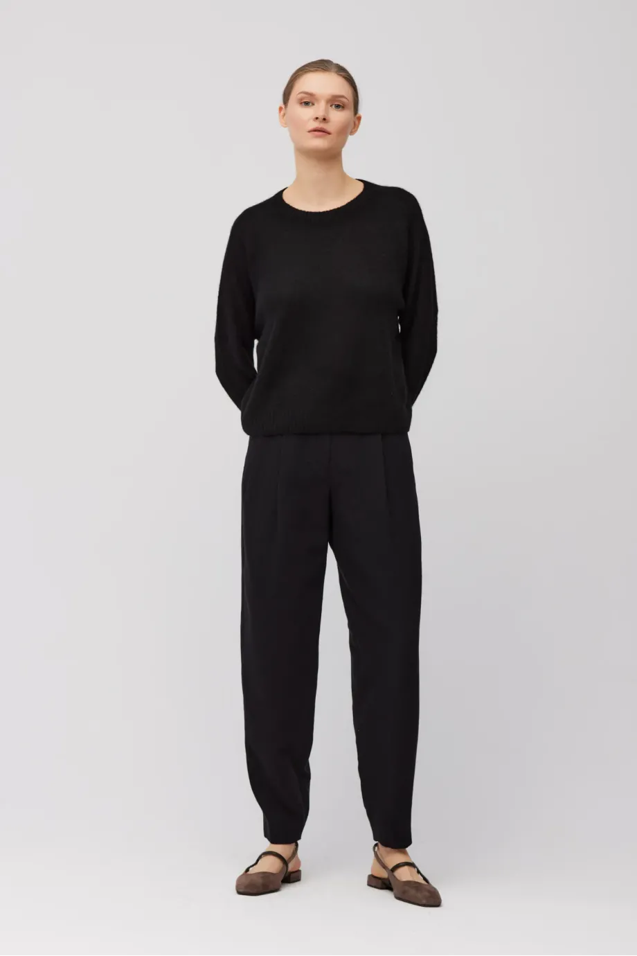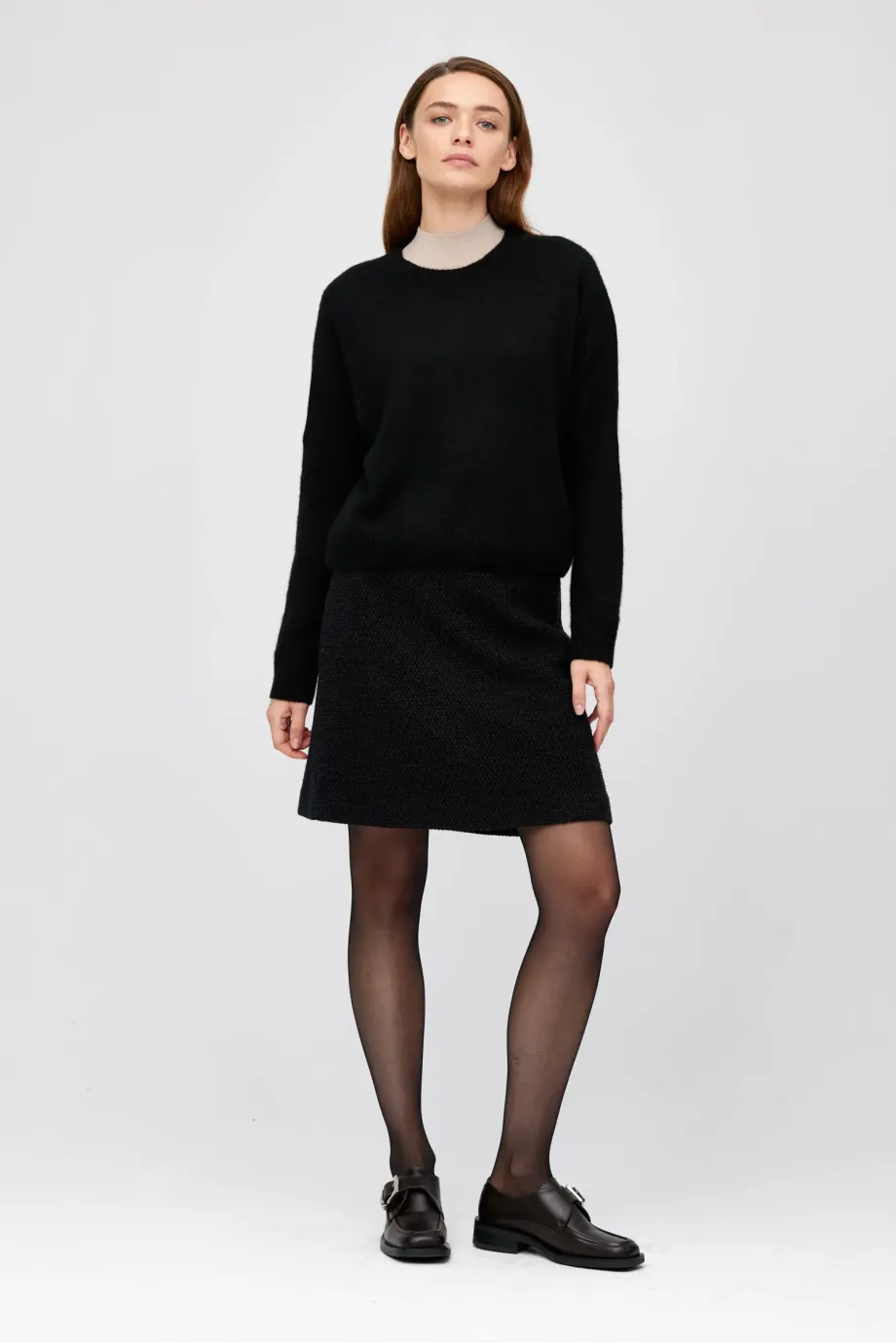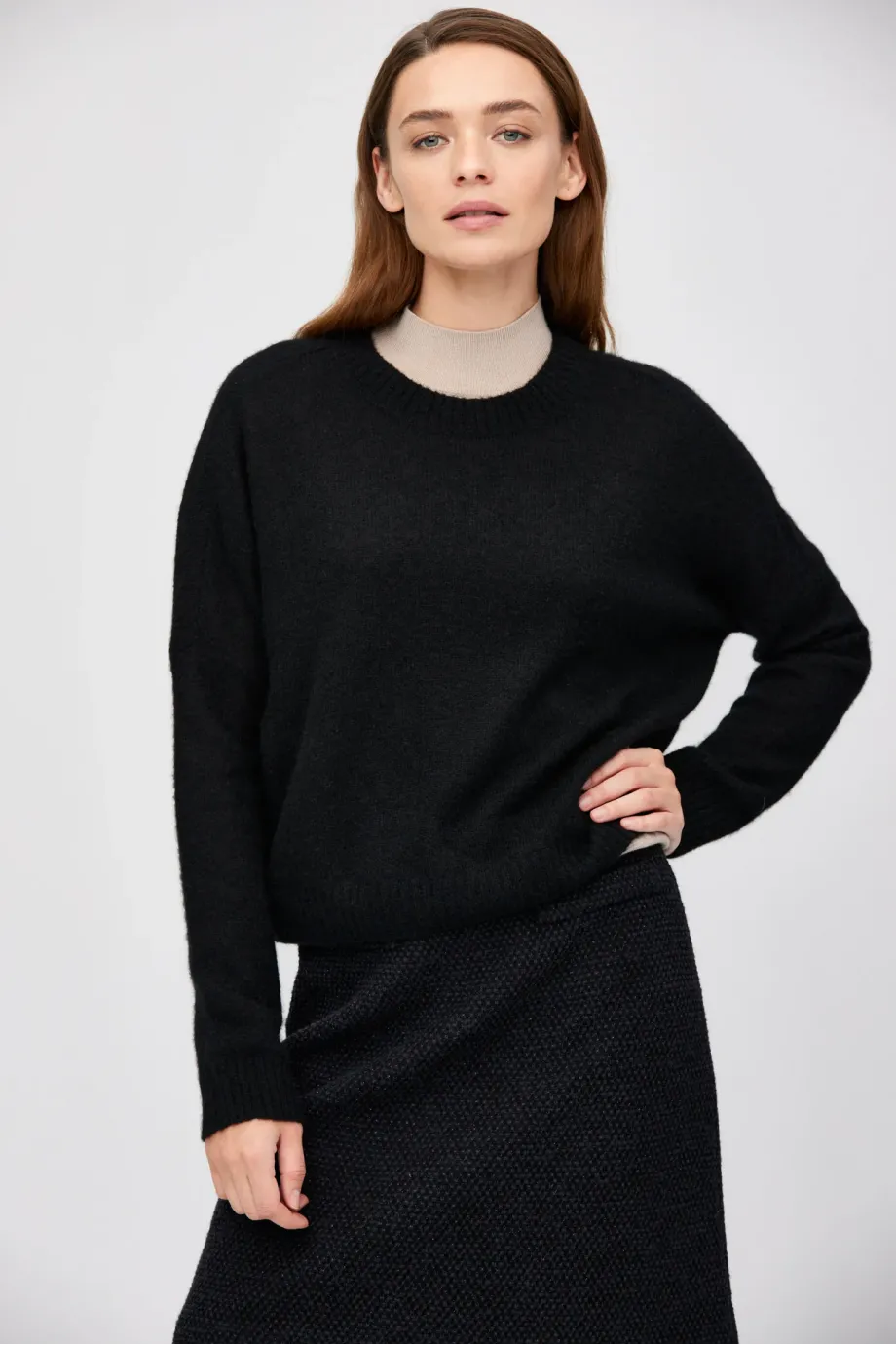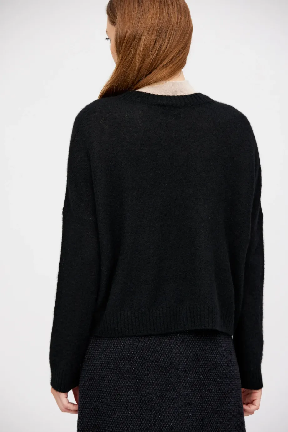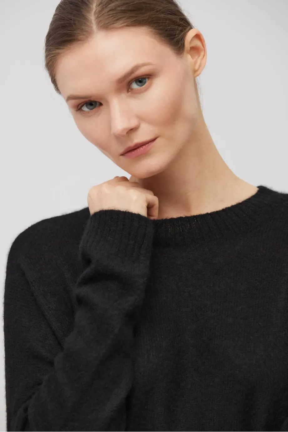 Schlichter Schnitt mit rundem Ausschnitt und langen Ärmeln. Weiches und zartes Gewebe aus Kaschmir und Seide. Jersey-Strick mit einer Maschenweite von 7 GG gefertigt.