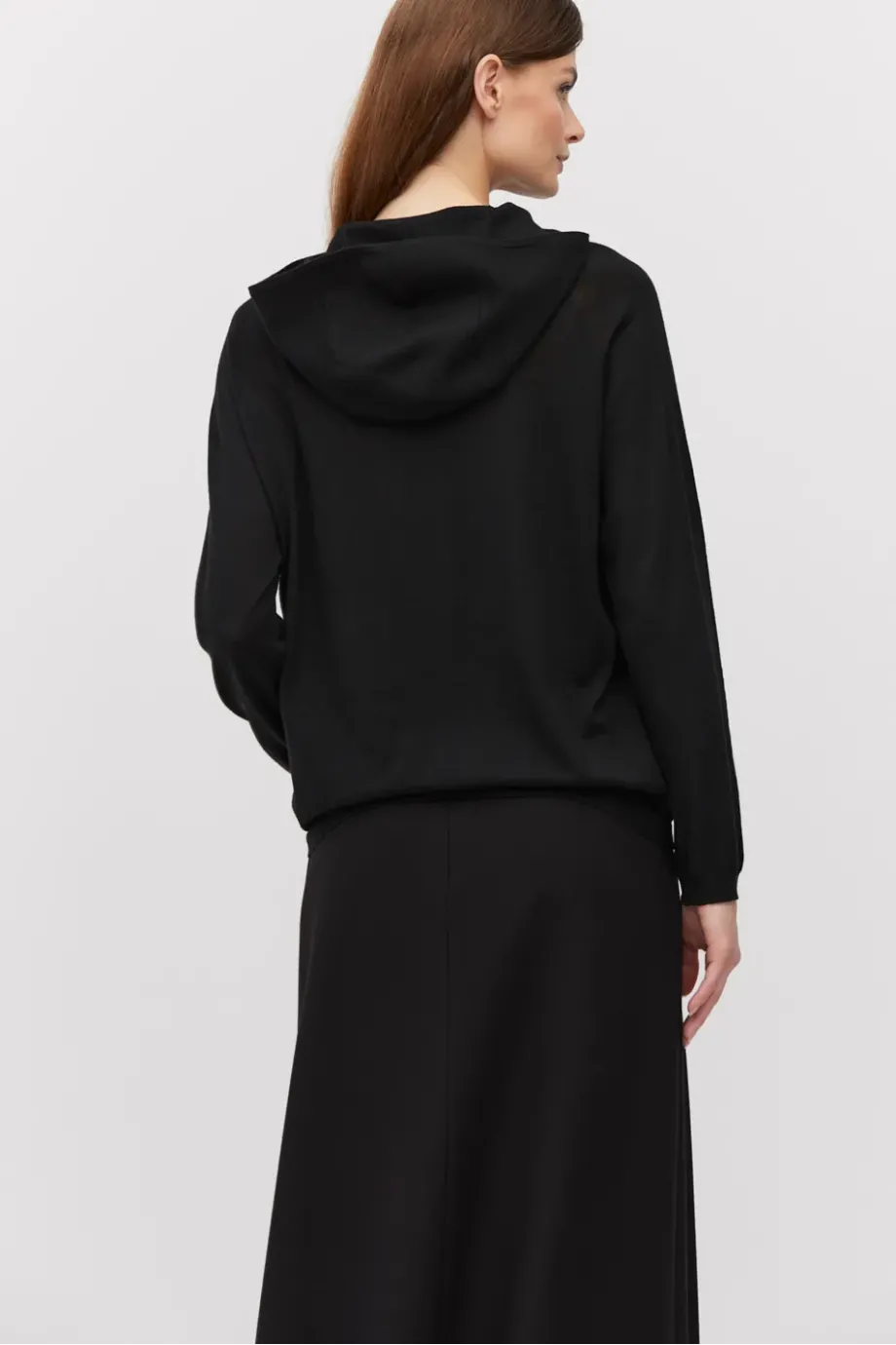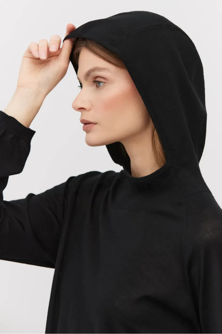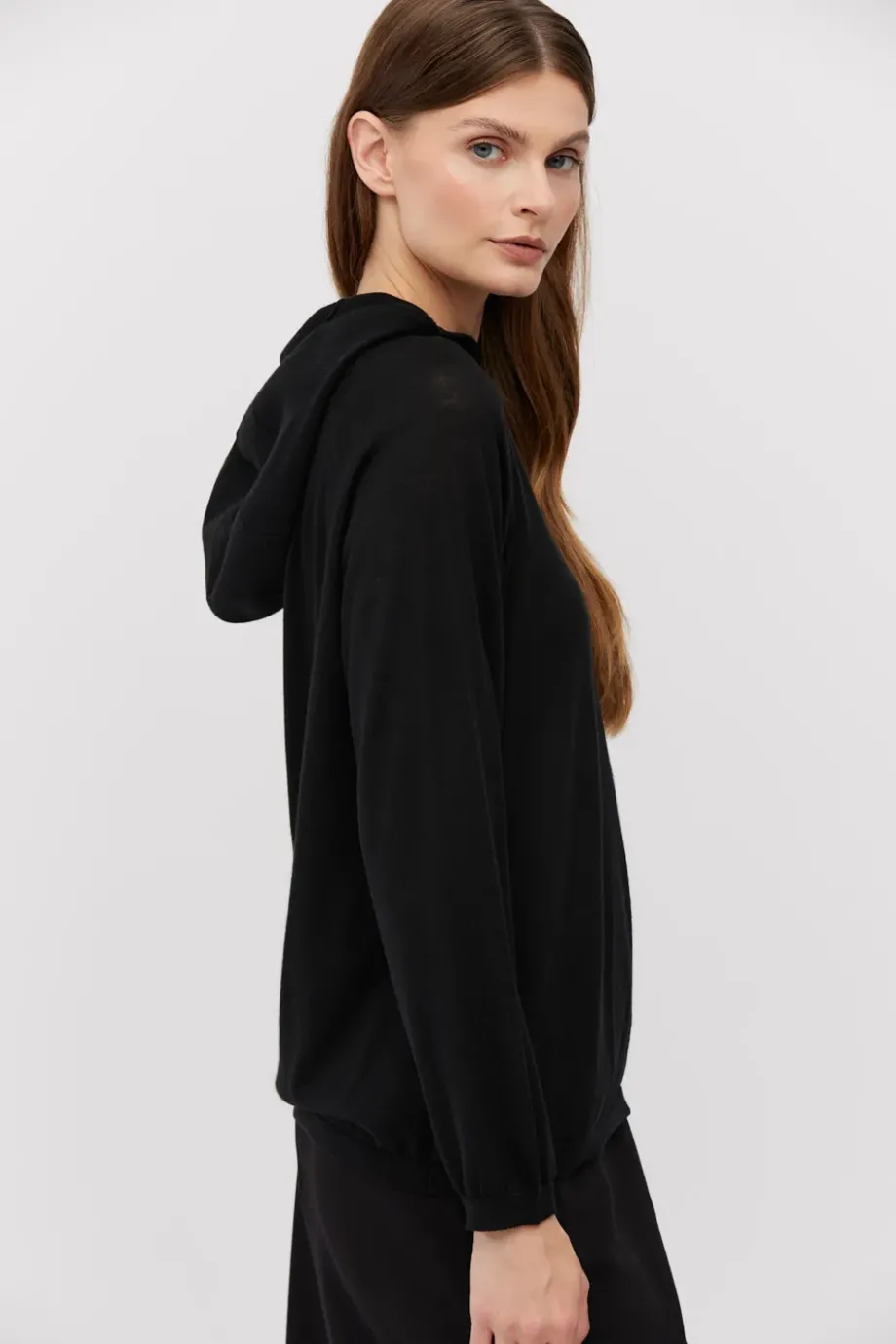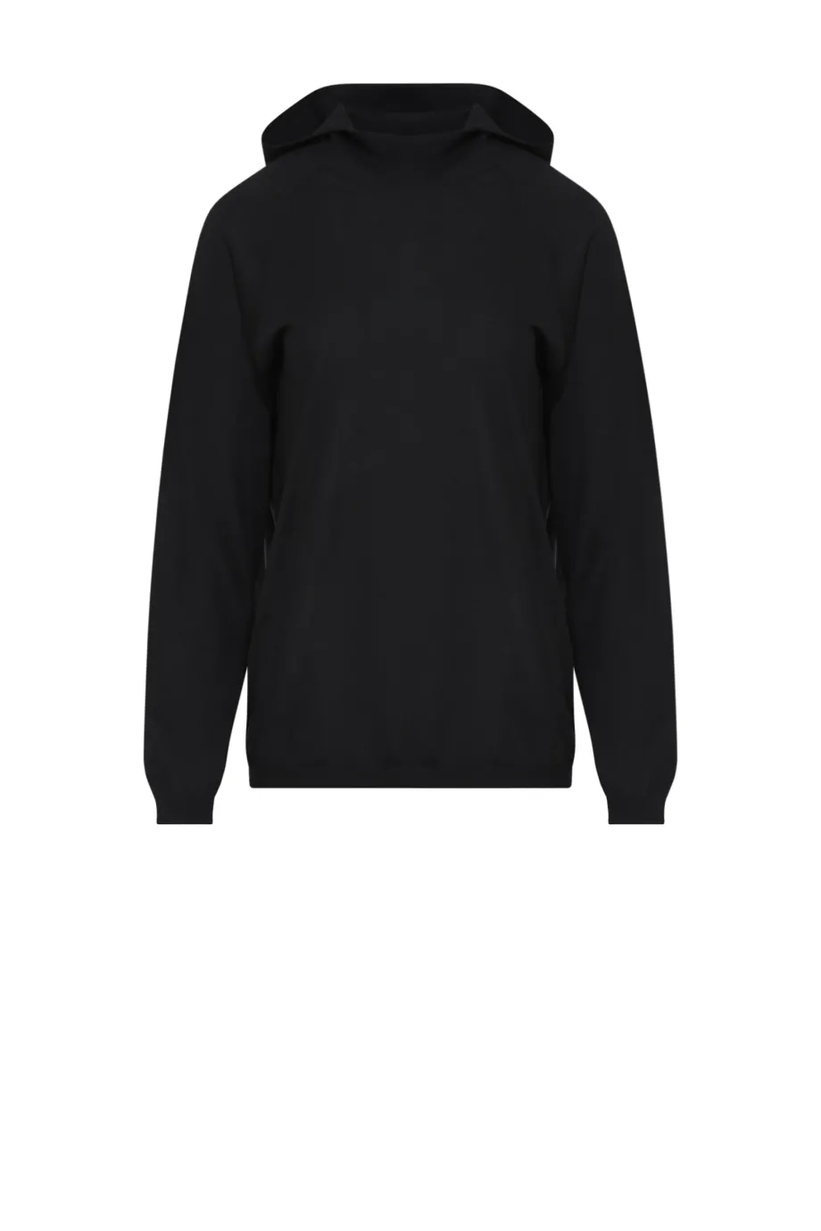 Schwarzes Kapuzen-Sweatshirt aus Merinowolle