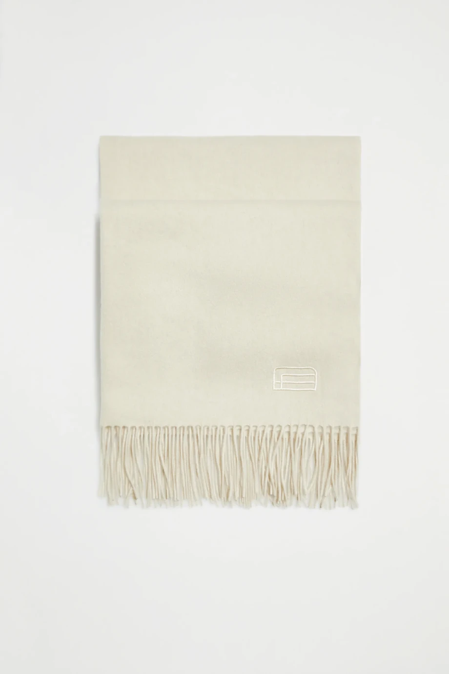 Weißer Schal mit Kaschmir. Mit Fransen. Weich und zart im Griff.