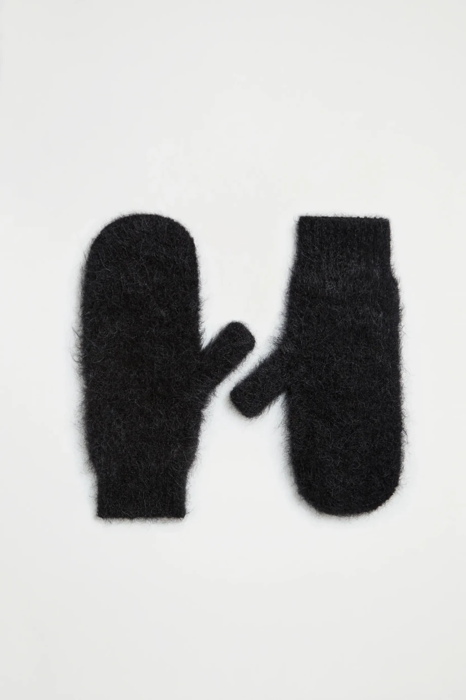 Handschuhe mit Suri-Alpakawolle. Gestrick mit längerem Flor, lockerer Single-Jersey, gefertigt auf einer Maschine mit 3 GG Feinheit. Farbe Schwarz.