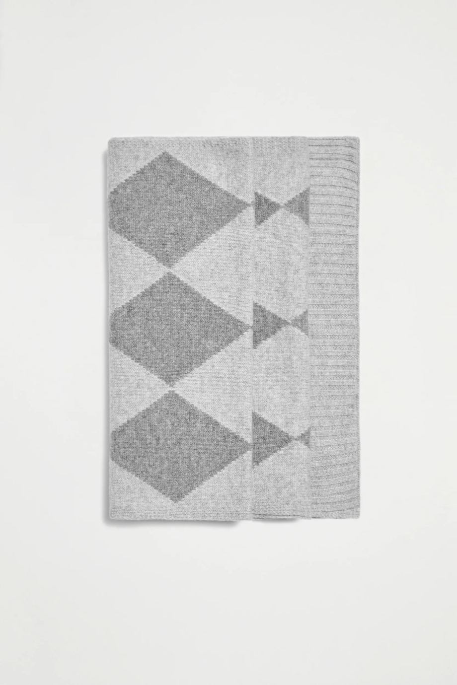 Grau-anthrazitfarbener Schal mit Rautenmuster. 100% Merinowolle.