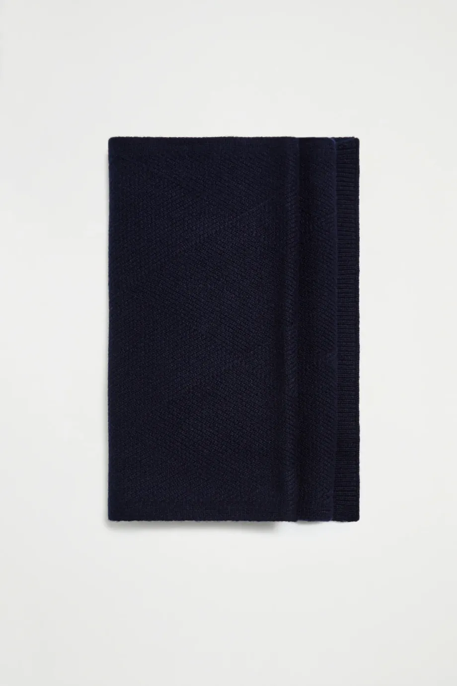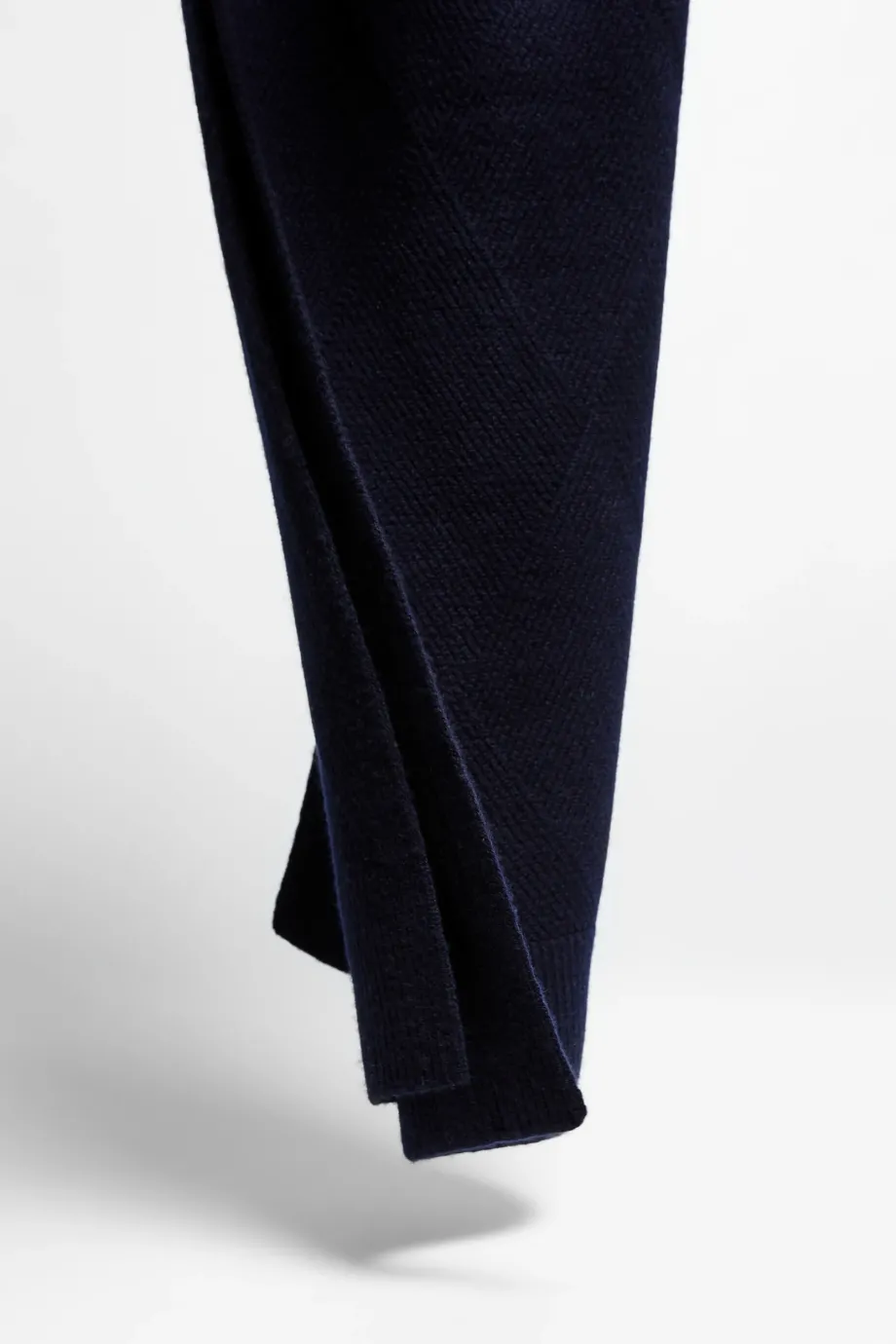 Schal aus Merinowolle. Feines Muster. Farbe Dunkelblau.