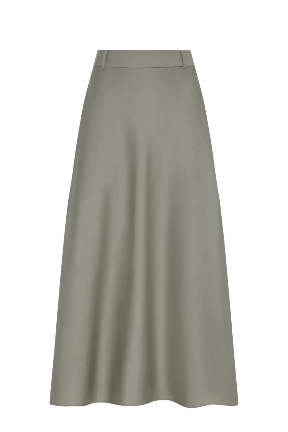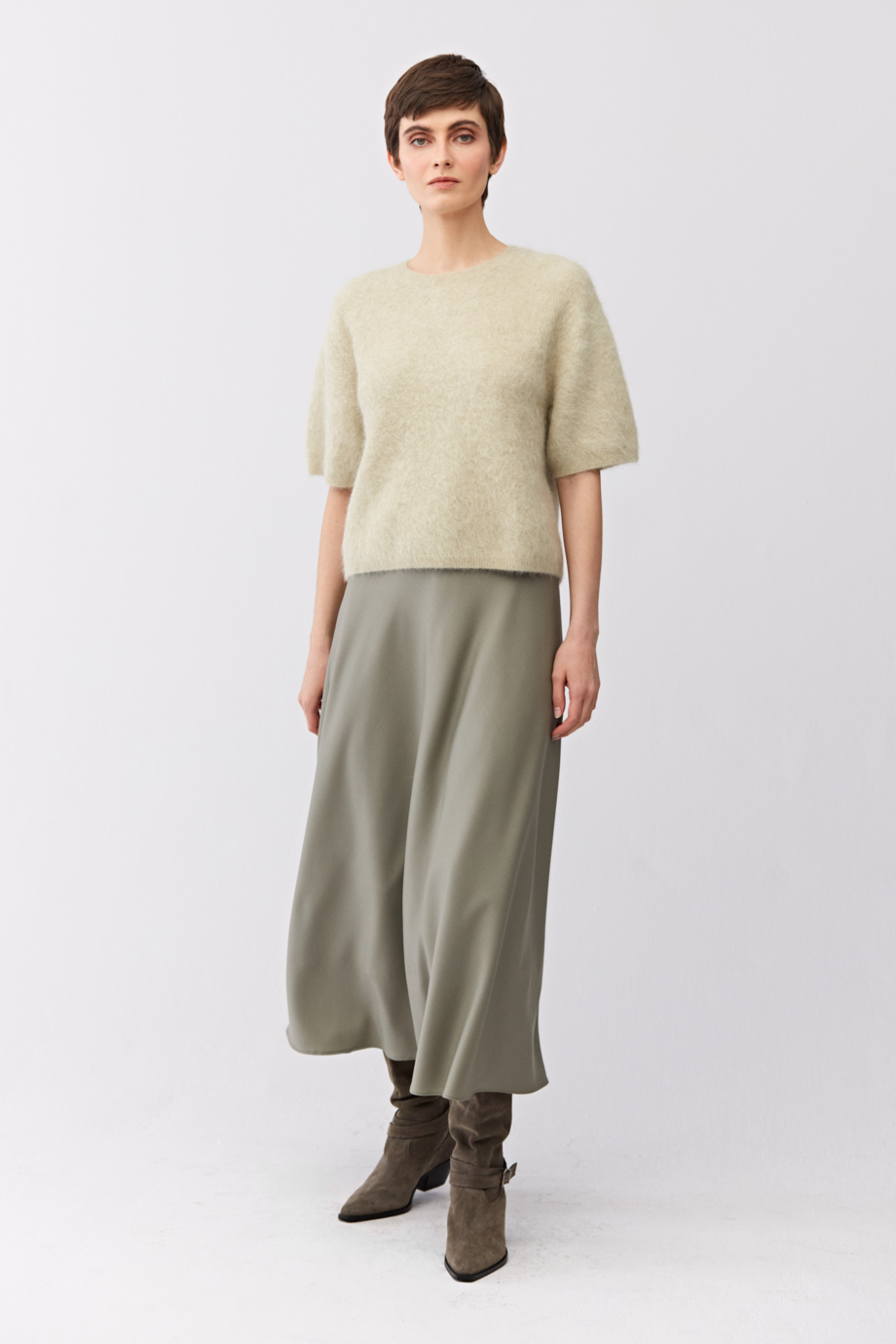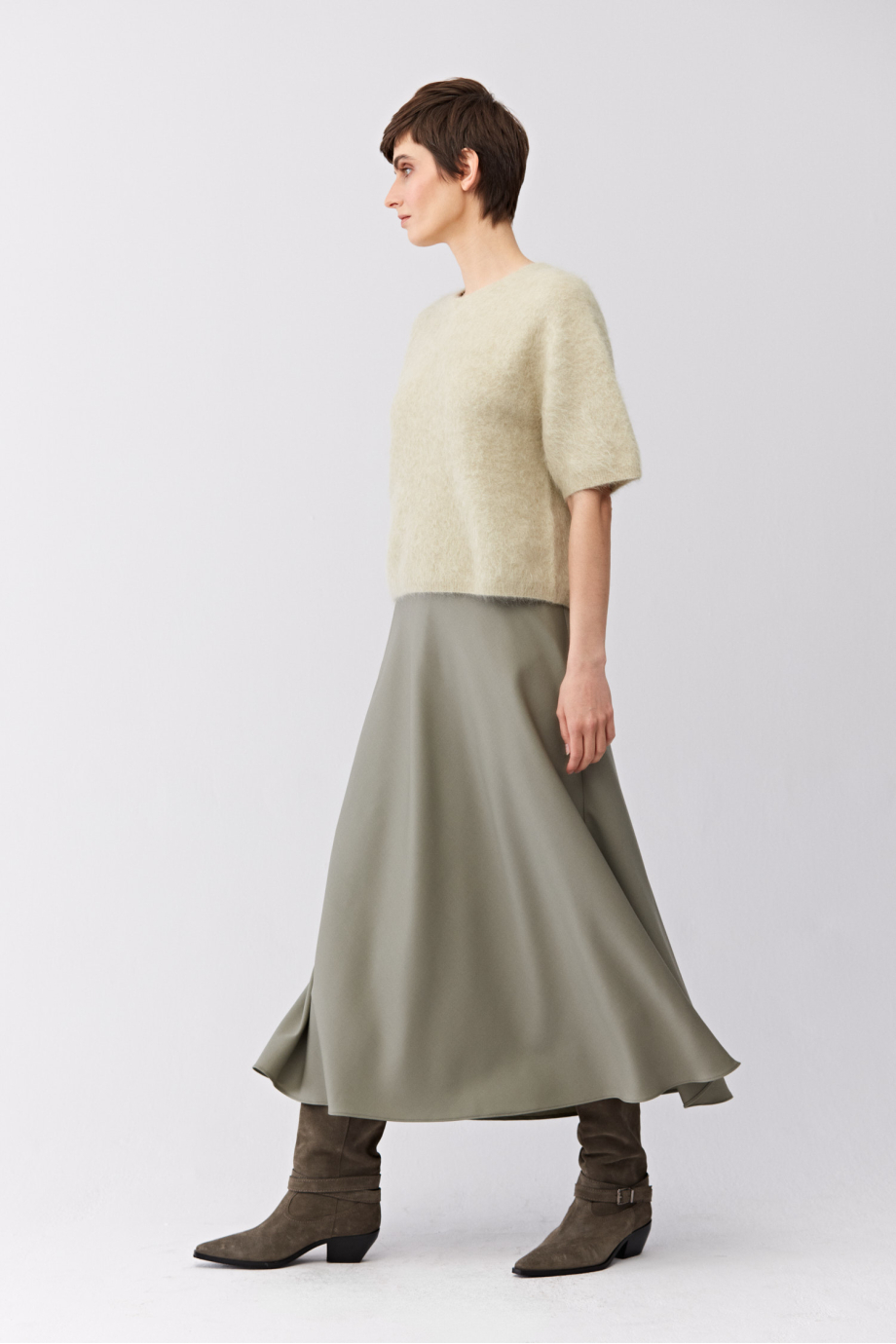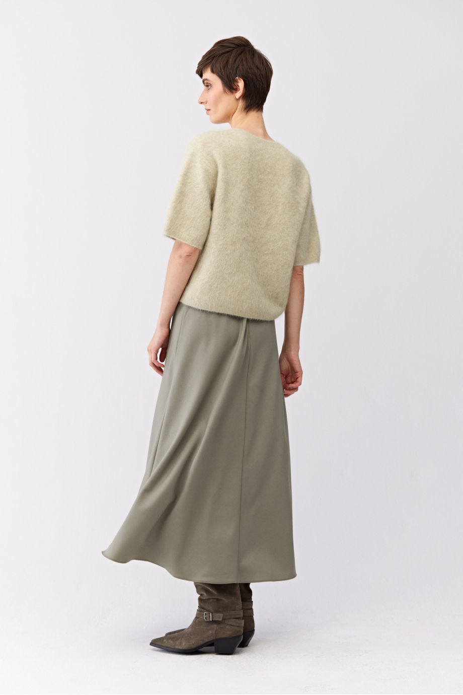 Midi-Rock aus Wolle. Seitlicher Reißverschluss und Knopf. Lockere Passform. Farbe Hellgrün.