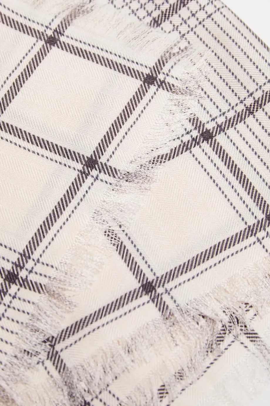 Kariertes Tuch aus einer Mischung aus Wolle und Seide. Weich und angenehm im Griff.