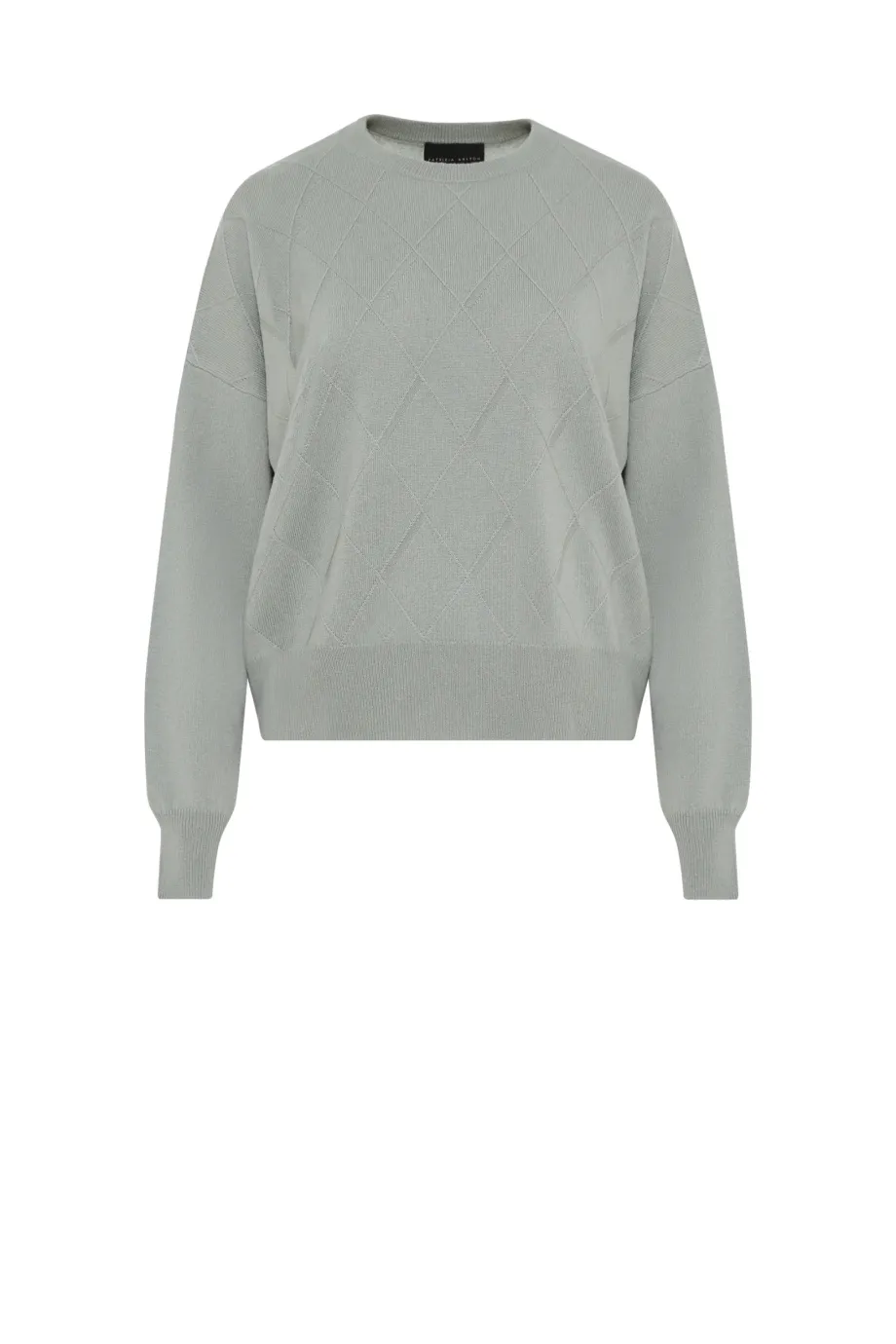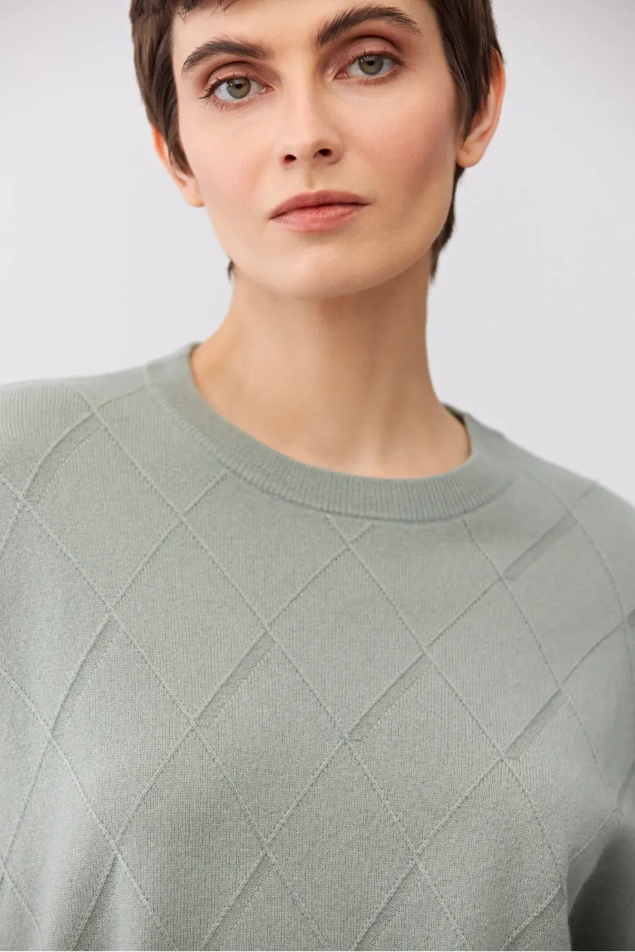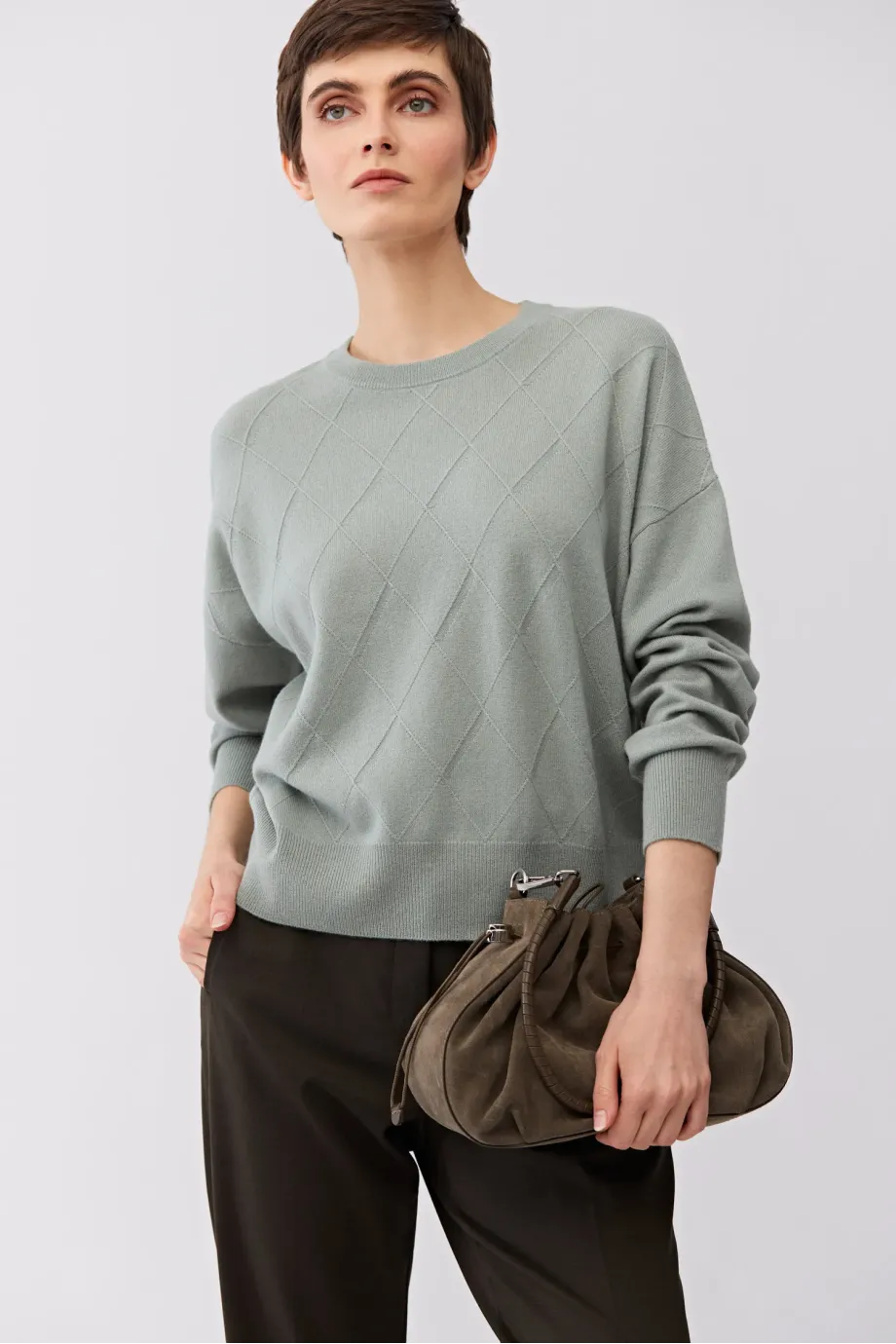 Bluse aus Merinowolle und Kaschmir. Kurzer Schnitt. Lange Ärmel. Weicher Single-Jersey-Strick, gefertigt auf einer 12-GG-Maschine. Farbe Hellgrün.