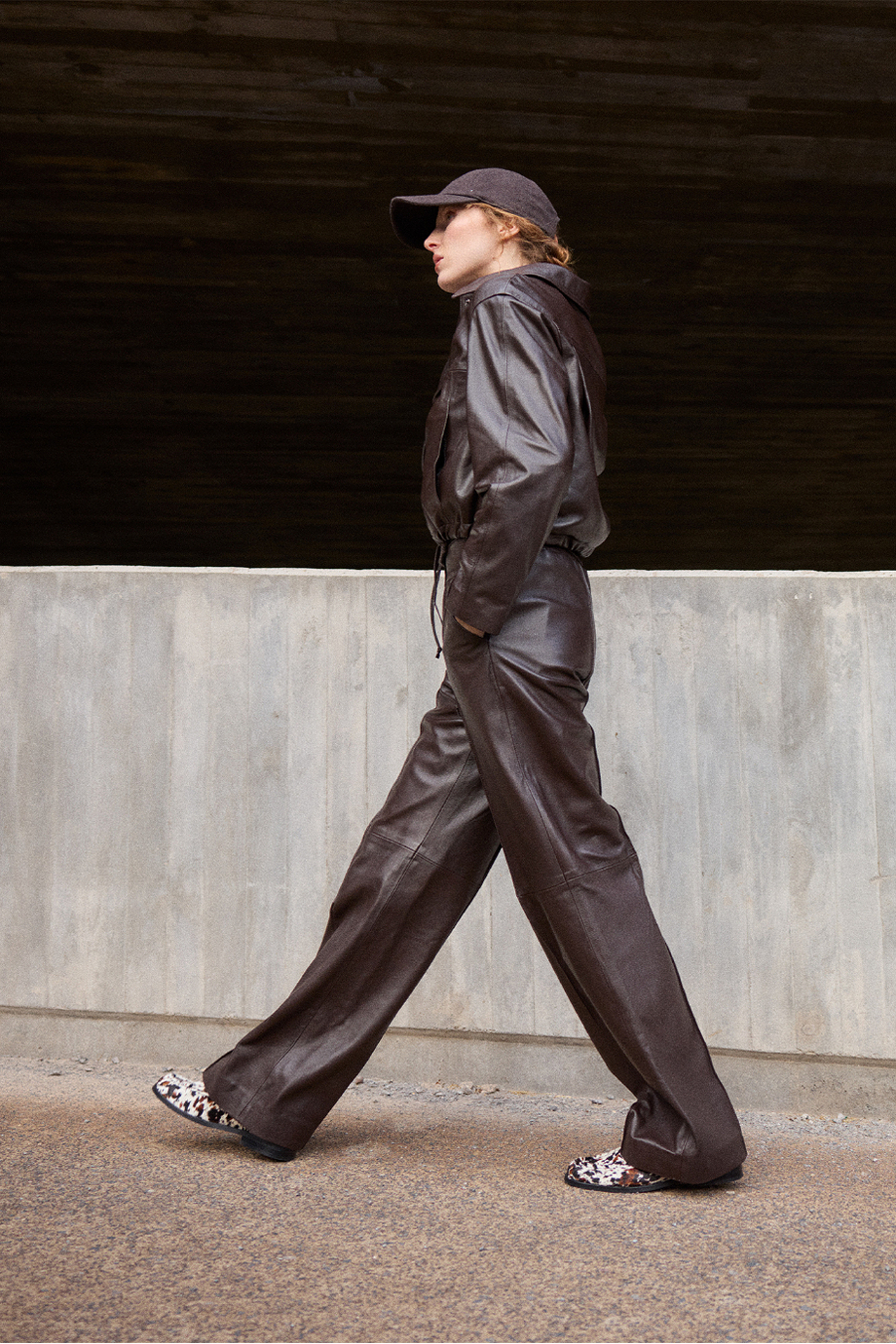 Braune Lederhose mit weitem Bein