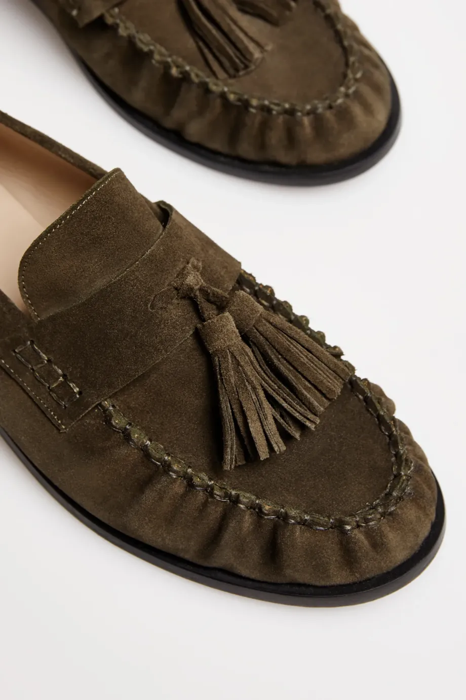 Veloursleder-Mokassins mit Fransen