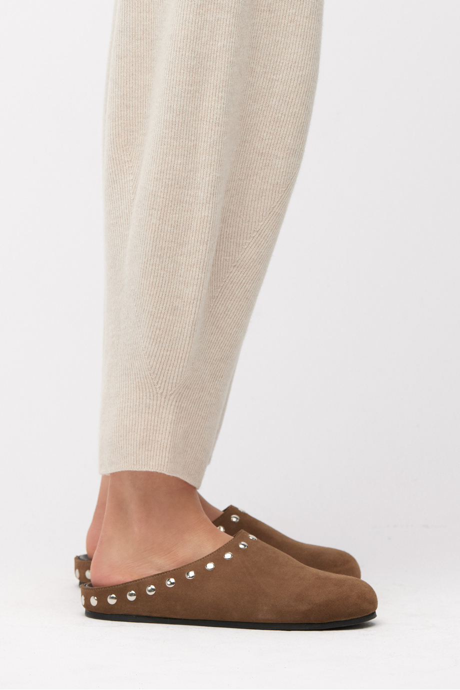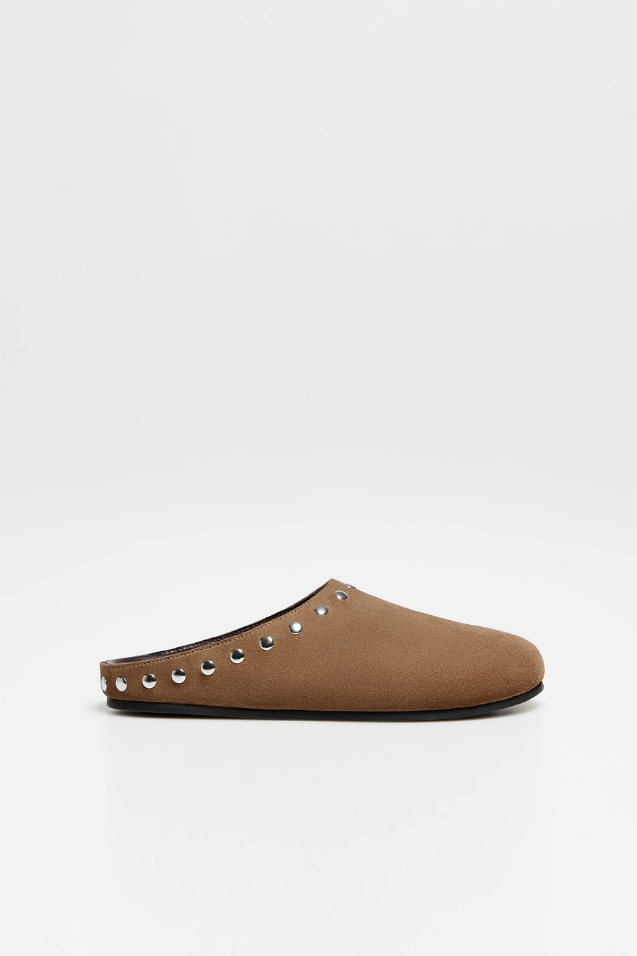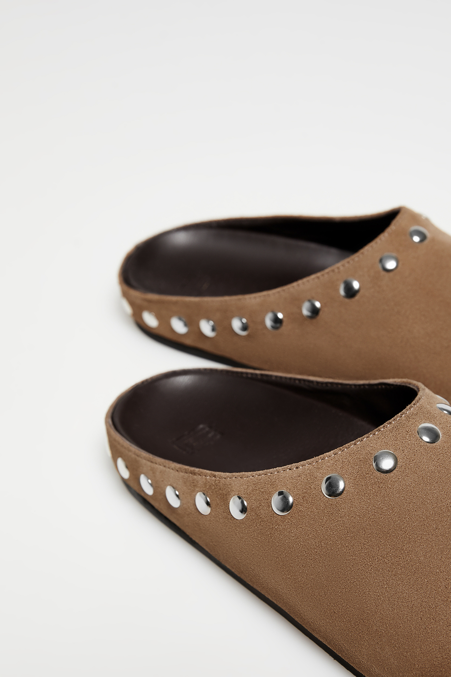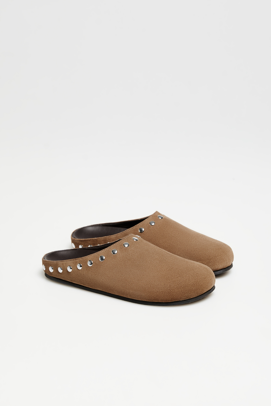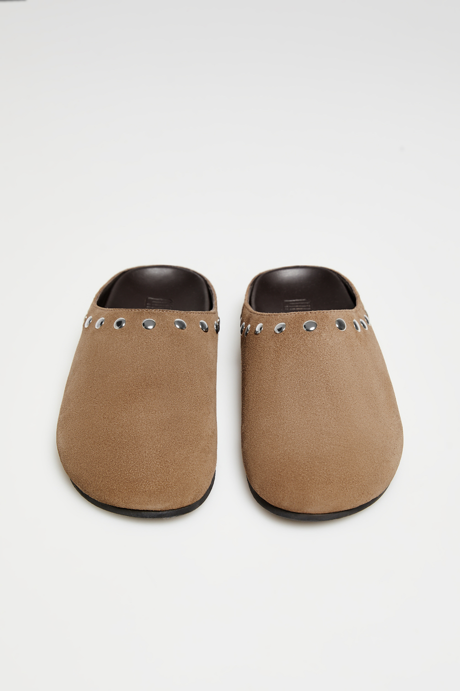 Braune Wildleder-Pantoletten mit Nieten