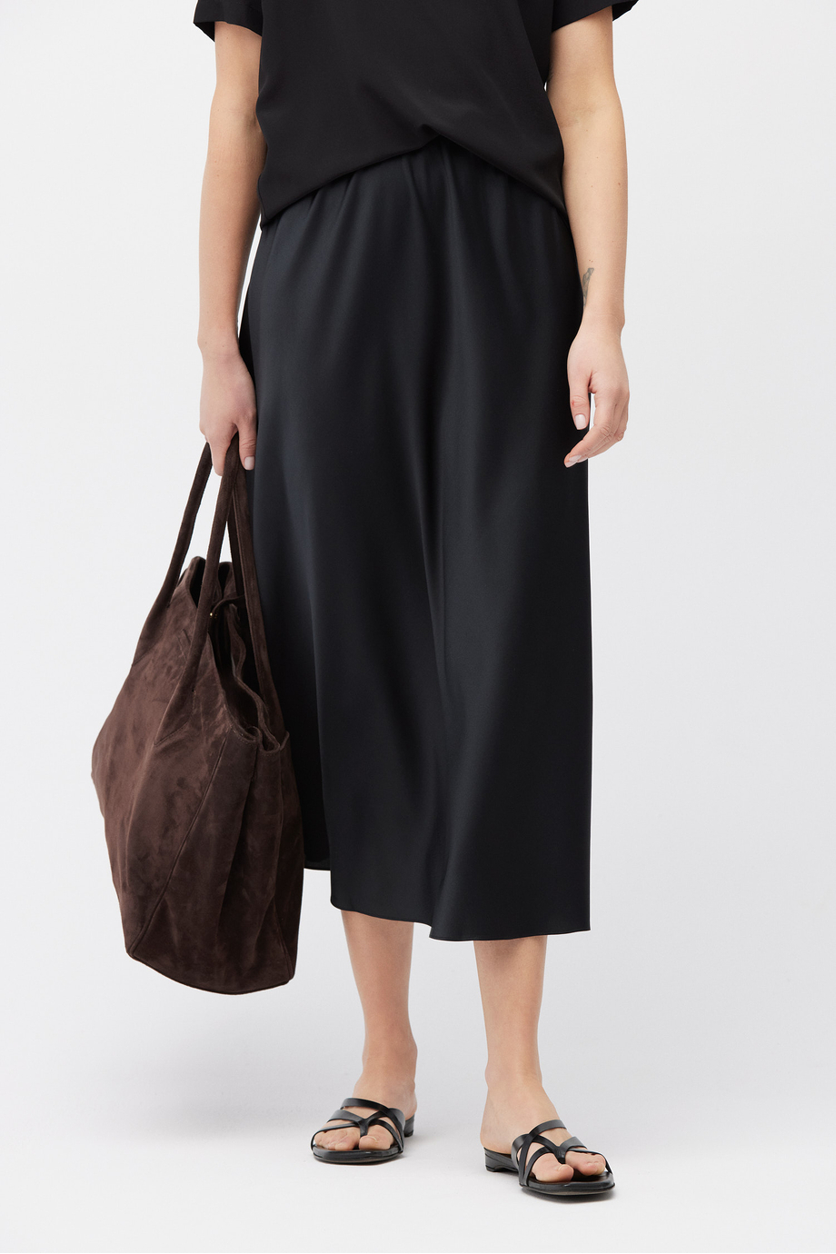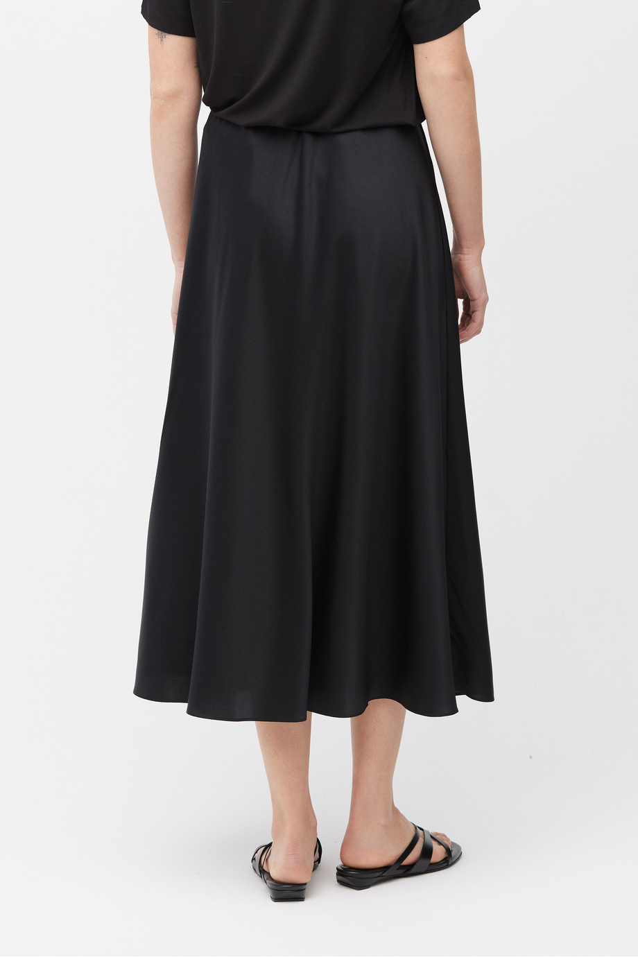 Schwarzer Rock aus Seide. Elastischer Bund. Midi-Länge.