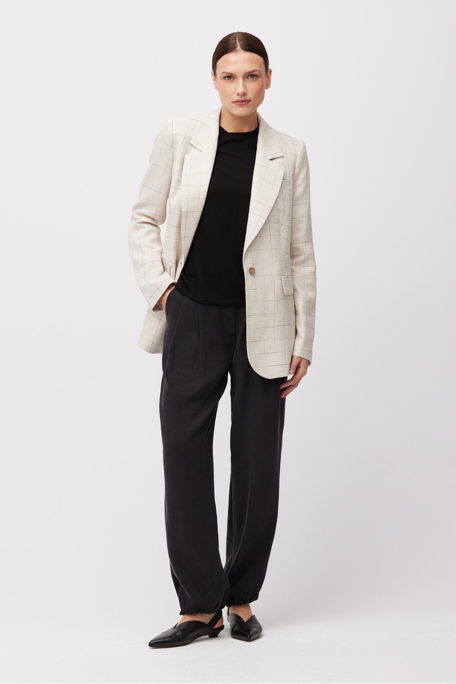 Beiges Sakko kariert mit Leinenanteil