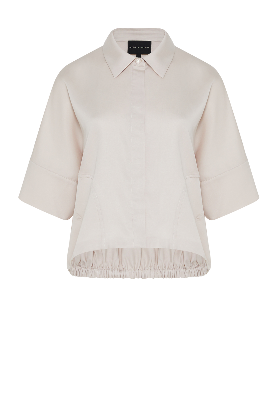 Bluse aus einer Mischung aus Leinen und Lyocell. Lockere Passform im Bomberstil, mit Raffung am Rücken. Kragen, kurzer Ärmel, Verschluss mit Knöpfen in verdeckter Knopfleiste. Kühler Beigeton. Passend dazu Rock aus demselben Stoff.