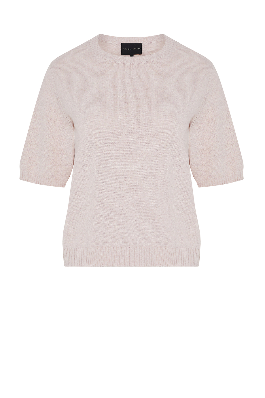 Pullover mit kurzem Ärmel aus einer Mischung aus Baumwolle und Leinen. Locker gestrickte Struktur, gefertigt auf einer Maschine mit Feinheit 7 GG.