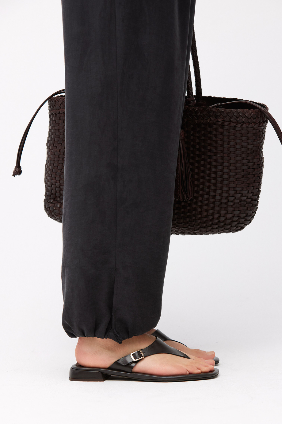 Schwarze Pantoletten mit kleinem Kitten-Heel, gefertigt aus weichem Rinds- und Ziegenleder. Handgefertigt in einer spanischen Manufaktur.
